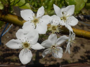梨の花(名残り花) 小さい梨の実が膨らみ始めています
