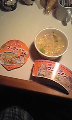 誰も居ないので! しんちゃんのタンメン! まあまあ普通の味! ツマミにはちょっと量が不足! 御飯を混ぜて食べる!