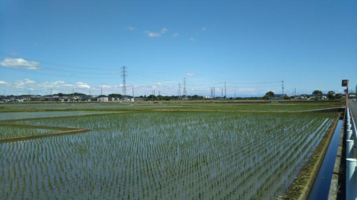 北春日部駅の西口に広がる田んぼの情景の第3報です。 前回のレポートは5月6日でしたから、それから2週間あまりで早苗達の姿も、緑がだいぶ濃くなってきたような気がします。 画面を見ても、このまえは土の色で全体がおおわれていた…