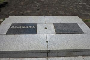 日本経緯度原点 (ブロックの真ん中の丸い物が原点標になります)