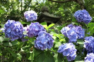 大平山あじさい坂・大中寺・あじさい林道・清水寺といたる所に咲き誇る様々なあじさいを楽しみながら木陰の中をのんびりと散策し、しかも、間もなく盛りを迎えるぶどう畑や山々の懐に広がる緑の里山、青々とした稲など情緒あふれる景色を楽しむ事が出来ました。