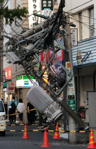 昨日ですが 春日部駅西口のファミマの前の電信柱が崩壊、、 理由は分かりません、、、、