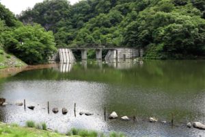 周りの山々を映し出す碓氷湖 (坂本ダム)