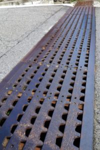 荻野屋さん前の用水の蓋として活躍しているアプト式旧ラックレール