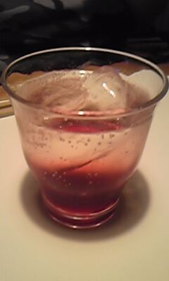 飲み比べは、男梅は水で割り混ぜてしまいました。 今回は、オシャレなカクテルです! ウソですよ! 男梅のシロップ割りを炭酸水にして 混ぜる前の写真ですよ! どうですか? カクテルは飲まないですね〜〜