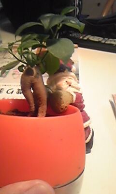 野菜は上手く出来ない、、、 観葉植物も、、、、 以前にも載せた姫うちわ! 上の方に大きめな葉が! 見方によればうちわポイかま! イメージと違う!!