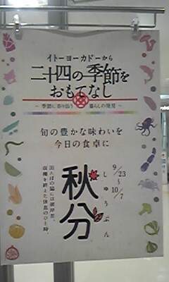 素直に秋ですね! 酷暑だから残暑も凄いかと思ったけど! 素直に秋!! 季節の変わり目もヨーカ堂のポスターで!! 演歌世代ですからね! 他のモノで知りたい!! この季節シリーズポスターは ヨーカ堂の四つ有る入…
