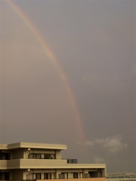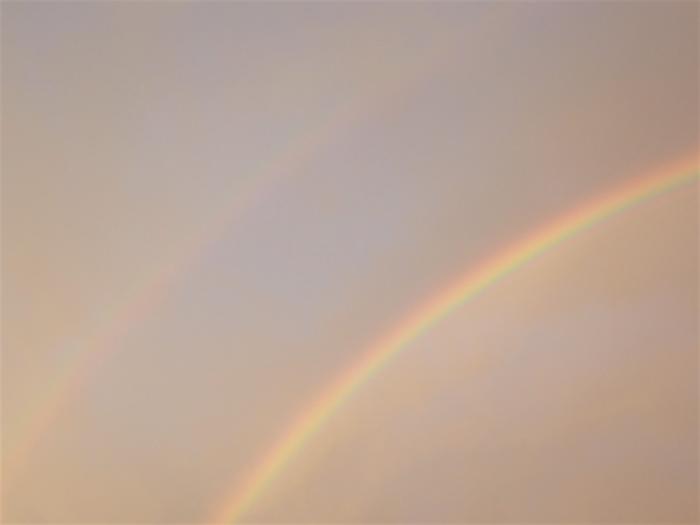 今朝早く目覚めたので東の空を見上げたら何と美しく朝日に染まっていました、何気なく西の空も見たら何と長大な虹がしかもダブルで出ていましたので思わず写真を撮ってしまった。不気味な出現なので悪天候の前触れかなと心配をしています。