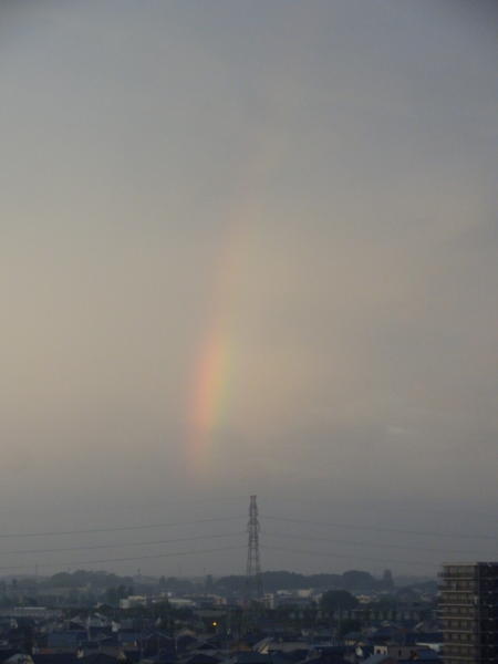 我家から南西方面上空を望む 虹が二つ出ています (上に出ている虹はだいぶ薄めですが)
