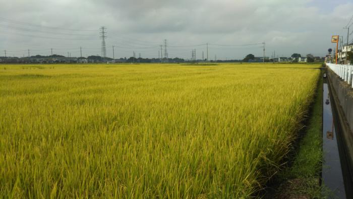 北春日部の田んぼも、いままで緑一色だったのが、だいぶ黄色味がかかってきました。