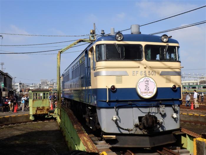 転車台でデモンストレーションしているE65系電気機関車「平坦路線向け直流用電気機関車 」