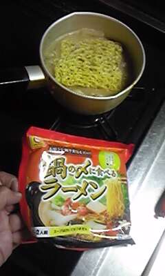 趣味の作品展の搬入が終わり。 昨日は暖かかったけど 今日は寒いーー 寂しく鍋ーー 今日は鍋のシメラーメン これは乾麺ですねー この冬の買い置き食料候補ですねー もちろん 懐かしのバイスサワーと おみぎり、焼きそばも準備ー…