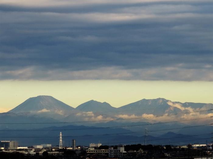 2018.12.08 村田 均 akasaka 今朝の日光連山 今朝がた曇り空でしたが我が家から日光方面を見たら、高雲の下に光の当たる日光の表連山美しく見えたので思わずシャッターを切ってしまいました、勿論足尾山塊や赤城山も同様に見え、奥には雪で輝きを増している上越国境の山々も薄っすらと見えていました。 アイキャッチ画像は圏央道越に日光表連山を望む 左から男体山・大真名子山・小真名子山・帝釈山・女峰山・赤薙山・霧降高原とつながる日光表連山です、日本(南・中央・北)アルプス・八ヶ岳連峰に次ぐ標高の高い連山となります。 4 件のコメント 男体山の格好だけわかります。 部屋から圏央道が望めるってのもいいですね。 最近は東名は勿論、中央道に出るのも、都心を経由せず圏央道の白岡菖蒲ICを利用しています。 返信する 圏央道久喜白岡Jct付近が判りにくい等のお話を聞きますし、意外と事故も多い道です十分に注意して利用して下さい、安全運転が第一ですから。 返信する ありがとうございます。年寄りとしての自覚を忘れぬよう気をつけたいと思います。 返信する こっちなんかーーー 高速なんて何年も走って無いーー 車の運転は年に3回くらいかなーー 酒は毎日だけど! 返信する コメントを残す コメントをキャンセルメールアドレスが公開されることはありません。 ※ が付いている欄は必須項目ですコメント ※ 名前 メール サイト 次回のコメントで使用するためブラウザーに自分の名前、メールアドレス、サイトを保存する。