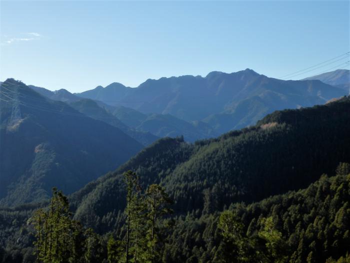 伐採地より展望とスリルを味わえる「石裂山」方面を望む