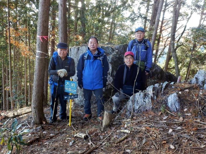 下山途中にある「大岩」の前で記念撮影