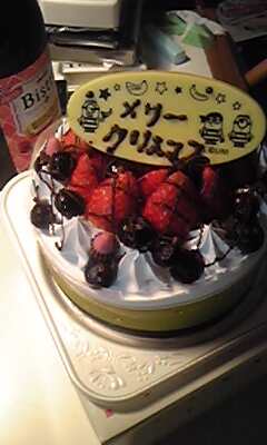 一応クリスマスケーキーー 正体はーー 999円の白いケーキーー 飾り付けをしてクリスマスケーキ完成 もちろん もちろん飲んでますよ もちろんチキンですよね 寒いんで裸じゃなくてーー