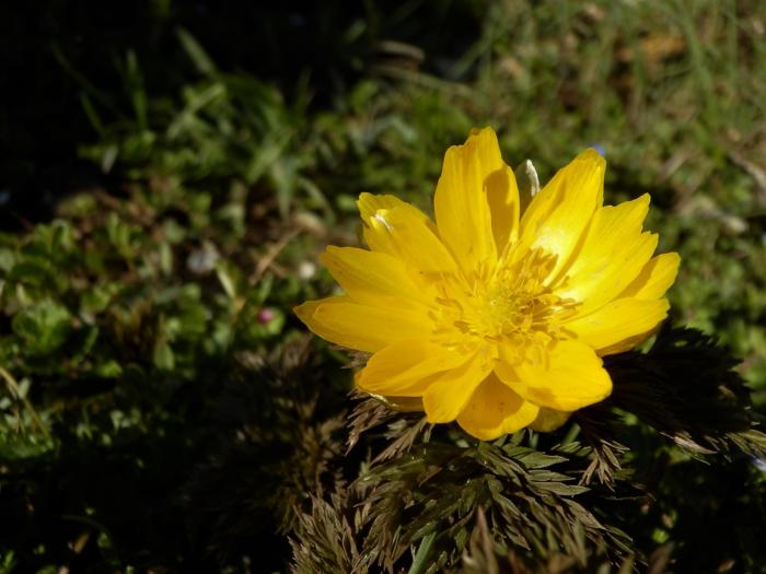 越生梅林内に咲いている「福寿草」