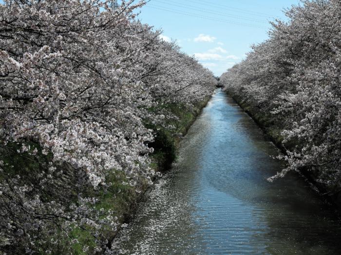 水辺の田園風景と絢爛と咲き誇る桜並木を楽しむために旧栗橋町の権限堂川及び大排水路へカメラを持って出掛けてきました、今年は開花後に寒の戻りがありましたので花持ちが良くいつまでも美しい桜が見る事が出来ました、但し、今日の強風、明日の雨でかなり散ってしまうものと思えます。
