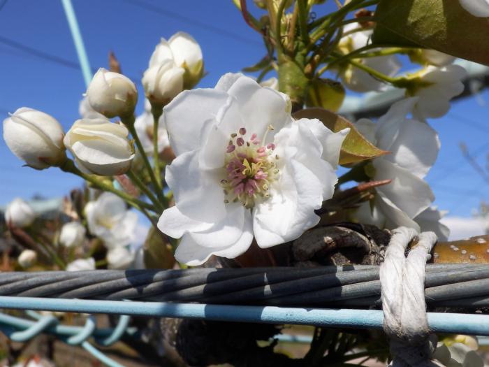 桜の花が終わりかけると咲き始めるのが白岡市の花『梨花』です、我が家の周りには梨畑が多く美しい花が間もなく満化を迎える時期になりました、これからは受粉の時期になり一年で一番忙しくなります。因みに梨の花言葉は「博愛」「愛情」「和やかな愛情」になります。一重あり八重ありといくつか梨花をご紹介致します。白岡方面にお越しの折はチャンスがありましたらゆっくりとお花見を楽しんで下さい。