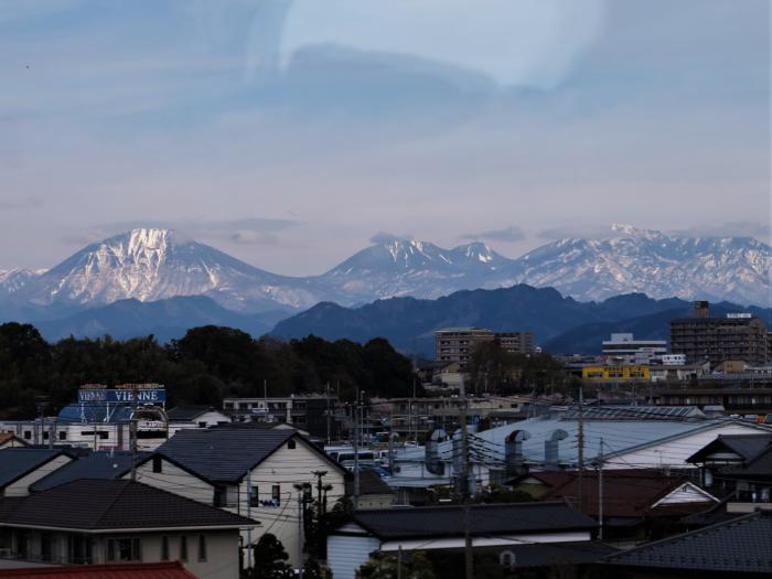車窓より日光連山を望む(左から男体山・大真名子山・小真名子山・女峰山・赤薙山)