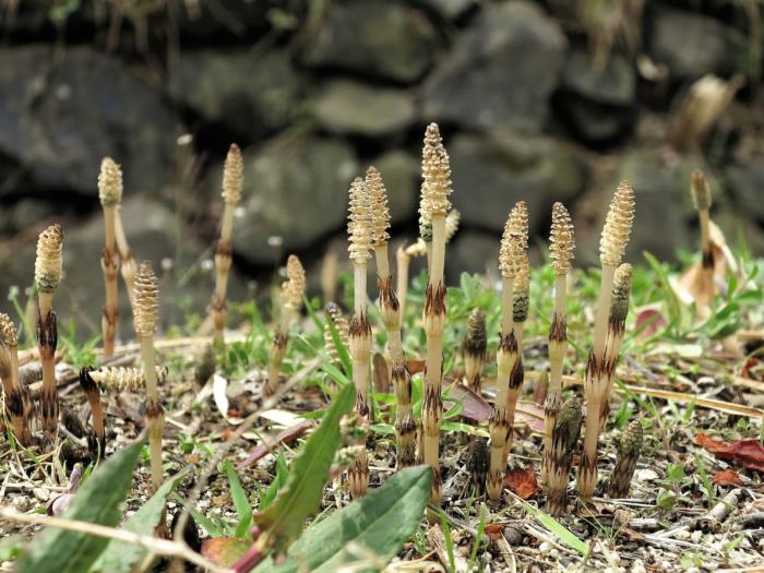 遊歩道脇に芽生えた「ツクシ(土筆)」