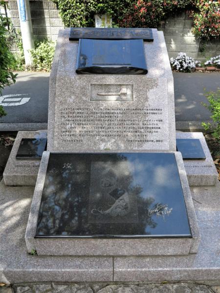 2005(平成17)年4月、ペンシルロケットの水平発射実験から50年を記念して、発射の地に顕彰碑を建立された。顕彰碑の下には、松本零士氏デザインのタイムカプセルが埋められています。