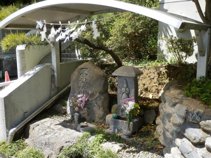 不動橋の北側に位置し、庚申塔は延享(1745年)に国分寺村の人々が建て、隣に天保3年(1832年)の記念銘のある石橋供養塔と、 建立年月日不明の不動明王碑があります。 石橋供養塔は、常に人に踏まれている石橋を供養する意味と、石橋を渡って村内に疫病や災いが入り込むのを防ぐ意味がある と伝えられています。