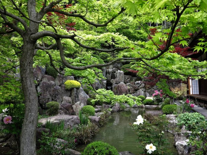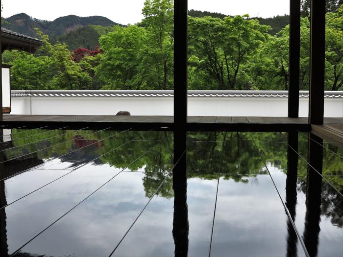 宝徳寺は臨済宗大本山建長寺第73世仏印大光禅師を開山として、桐生地域の領主であった、桐生佐野正綱公の開基により室町時代の宝徳年間(1450年頃)に創建された禅寺です。「新緑の床もみじ特別公開」「紅葉の床もみじ特別公開」この期間以外は床もみじをご覧いただくことができません。床もみじが見られるのは全国的に数ケ寺しかありません。皆様が各種SNSなどに自由にアップできる、つまり自由に撮影できるのは宝徳寺だけだと思われます。関東でも珍しい、そして全国的にも珍しい宝徳寺の床もみじです。この季節は「新緑」だけではなく境内に咲くぼたんの花も美しく、宝徳寺の新緑と、鳴神山の新緑が遠近コラボとなります。(宝徳寺HPより)
