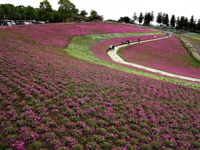 太田市の北部に位置する公園面積約19haの広大な公園です。毎年春には約250本の桜、芝桜、ポピー、ネモフィラが約4.6haの丘陵地一面に咲き競う美しい公園です。残念ながら芝桜はピークを少しばかり過ぎていましたが!。