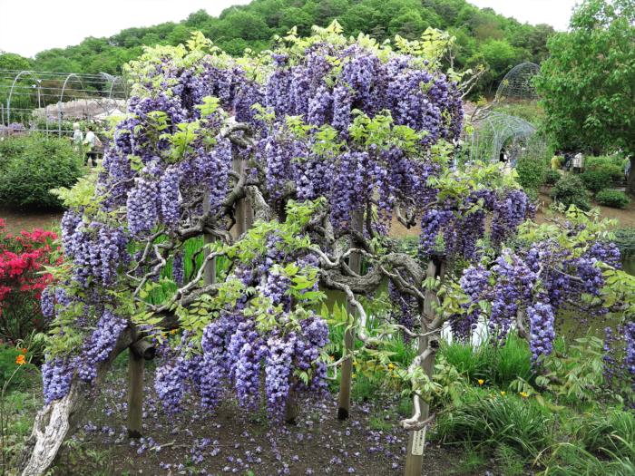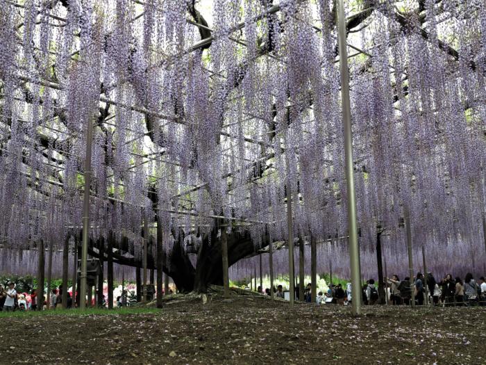 足利フラワーパークの大藤 4本 ( 野田九尺藤 3本、八重黒龍藤 1本 ) と 80m におよぶ白藤のトンネルは栃木県天然記念物に指定されており、これらが見頃を迎える 4月中旬から 5月中旬の 1ヵ月間は 「ふじのはな物語~大藤まつり~」 が開催されています。