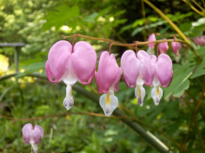 「ケマンソウ」(別名タイツリソウ) やや湿り気のある環境を好みます。鉢植えは、土の表面が乾く前に水をたっぷりと与えます。夏から冬は休眠していて地上部はありませんが、根は生きているので水やりはかかさないようにしてください。地植えは、雨が降らない日が続き、地面が乾燥しているようなら水やりをするくらいで十分です。