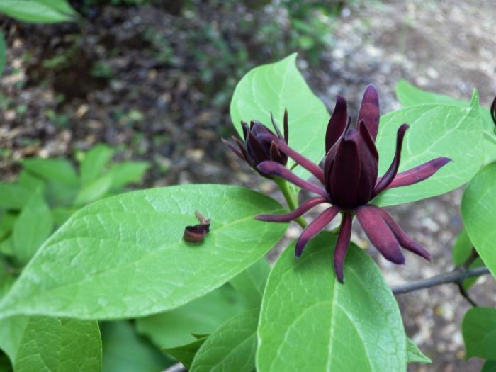 「クロバナロウバイ」(黒蠟梅) 香る濃緑色の葉、多数の花弁からなるチョコレート色の甘く香る花が特徴です。