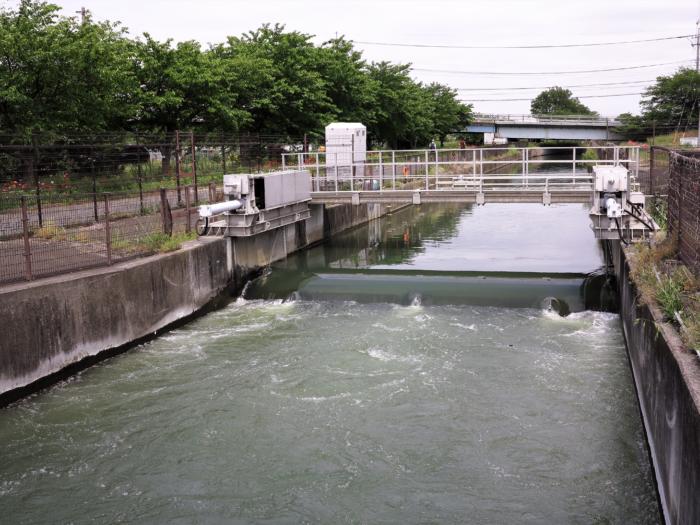 コスモスふれあいロード(河原橋)より田植の時期の為水量が多い葛西用水路