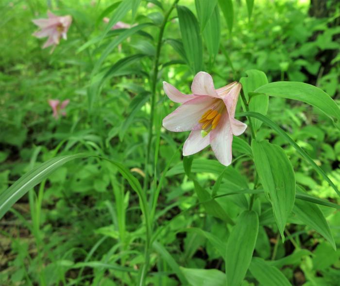 昨日私の大好きな高山植物である「姫小百合」が見頃を迎えたので南会津町にある高清水自然公園へ逢いに行ってきました。高清水自然公園の姫小百合群生地は、標高850メートルの山の上にあることから、『天空のひめさゆり』とも言われています。姫小百合は日本特産のユリで正式名称「乙女百合」と呼ばれ、宮城県南部及び新潟県、福島県、山形県が県境を接する飯豊連峰、吾妻山、守門岳周辺等にだけ分布する貴重な植物で、野生種は環境省のレッドリストで準絶滅危惧種に指定されています。花言葉は「飾らぬ美」、「純潔」、「私の心の姿」。今回はお得な「ゆったり会津 東武フリーパス会津田島」で行きましたので帰りに途中下車して中三依にある日光市営の「中三依水生植物園」にも立ち寄り様々な山野草を観て来ました。