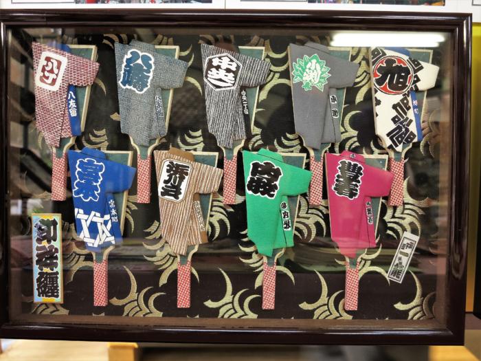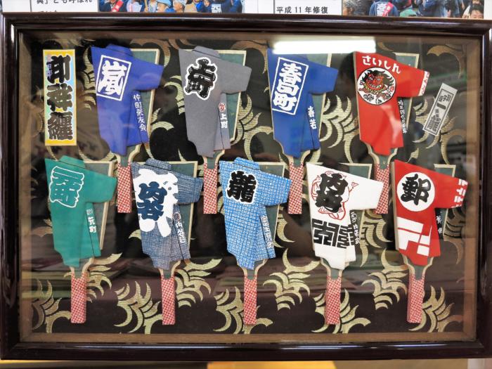 各町内の印半纏をミニ羽子板風に作成して収まった額もぷらっとかすかべに展 示中です。