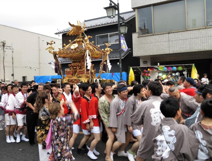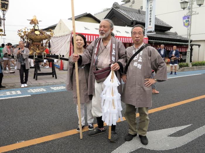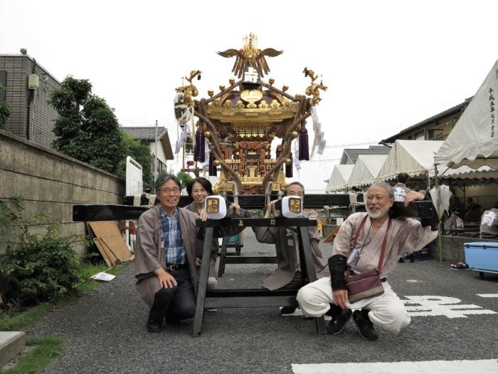 上町神輿にて右から(木村浩・木村鷹志・加島和代・村田均) 敬称略