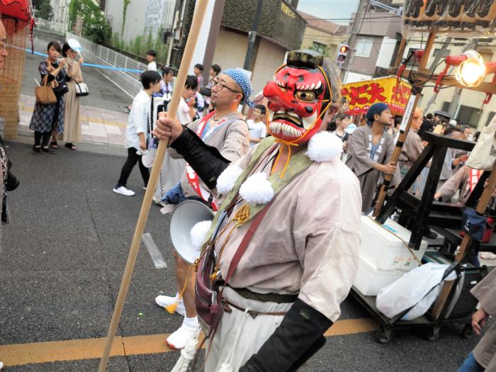 大人神輿パレードで町神輿を天狗装束で誘導している「木村浩」君