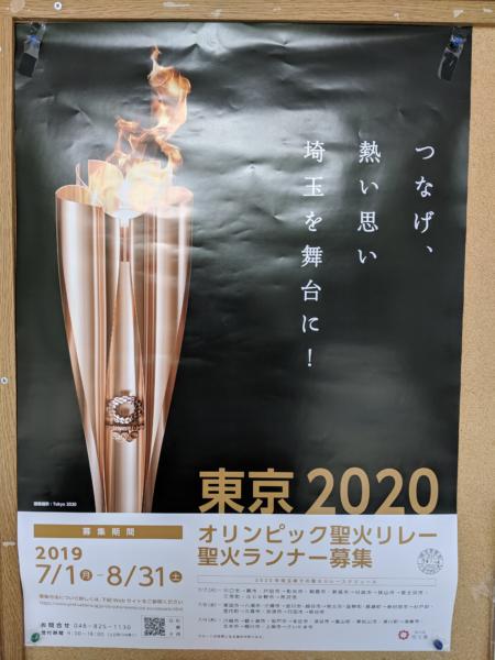 二度目の東京オリンピック! 聖火ランナーの募集中! 知り合いがグランドを借りるんで 免許証を持って大沼の体育館に行って ポスター発見! 確かに埼玉でも一部競技は開催されるけど (●´⌓`●) この広告費は埼玉の支出なのか…