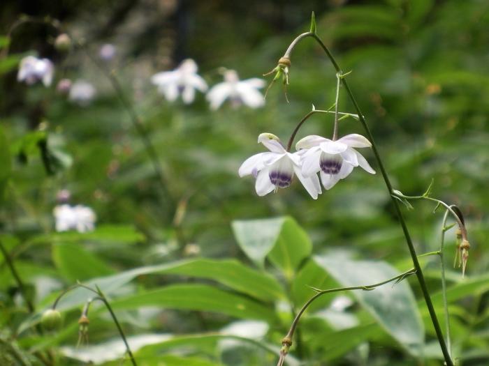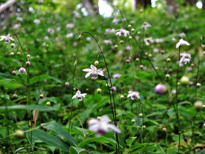 日本一の群生地と言われる御岳山富士峰園地一帯に咲くレンゲショウマ(蓮華升麻)が見頃を迎えましたので見に行って来ました。レンゲショウマは別名「森の妖精」と言われる日本特産の1属1種の可憐な花で、キンポウゲ科、レンゲショウマ属の多年草。 花が蓮華に、葉がサラシナショウマ(晒菜升麻)に似ているので、レンゲショウマ(蓮華升麻)の名がつけられた。高さは60センチ前後です。