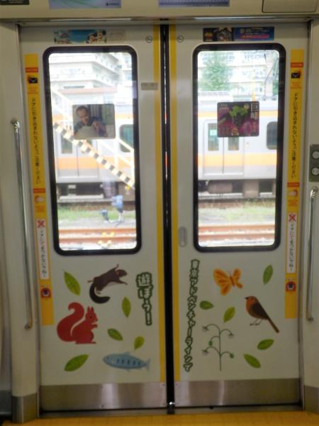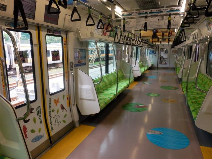 車内床にはられている東京アドベンチャーラインのロゴマーク