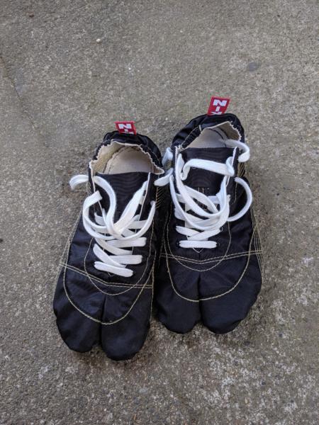 地下足袋のスニーカー! 地面を指で掴む感じを ダイレクトに感じられそう! 靴下は無くても、5本指も持ってる そこは問題無し 足の形が変形 さらに左右の形がずれてる 左右が同じのは〜〜 キツイ(╯︵╰,)