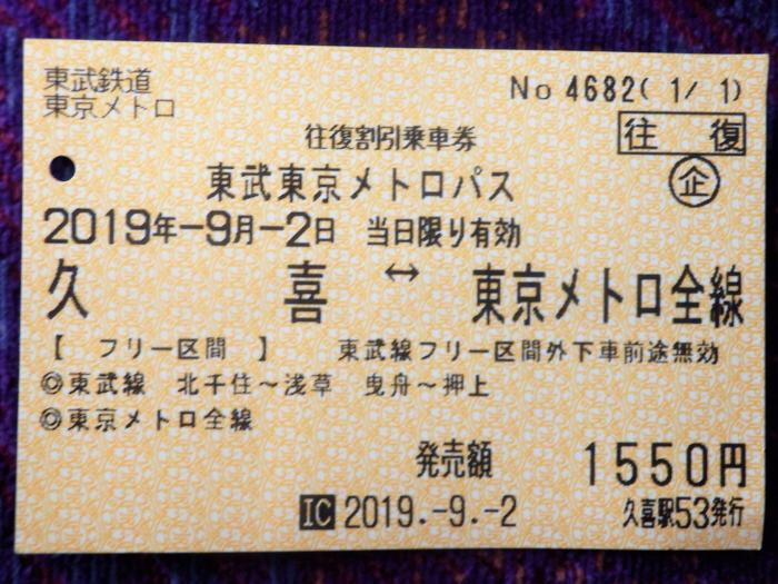 る複数の場所へ用事の時は乗降り自由の下記切符がありますので往復でお得に東京メトロを乗る事が出来ます、因みに今回は1980円のところ1550円で済みました、東武線沿線の方は如何ですか。