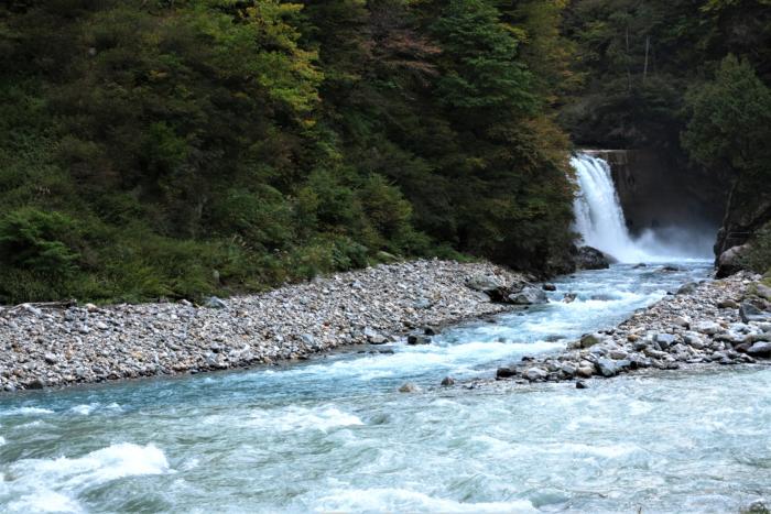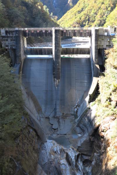 黒部ルート見学会の中程にある「仙人谷ダム」黒部川第三発電所へ発電用水を流しているダムです