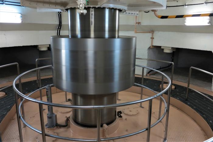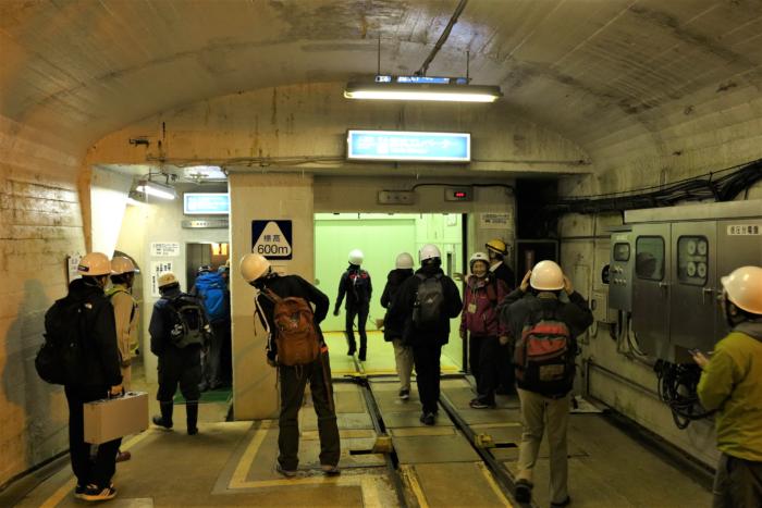 トロッコと上部軌道を結ぶ「立坑エレベーター」標高差200mの竪穴に設置されているエレベーターです
