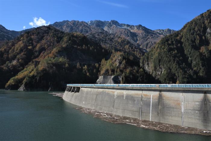 黒部ルート見学会の終点「黒部ダム」ダム堰堤越しに立山連峰を望む