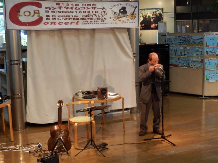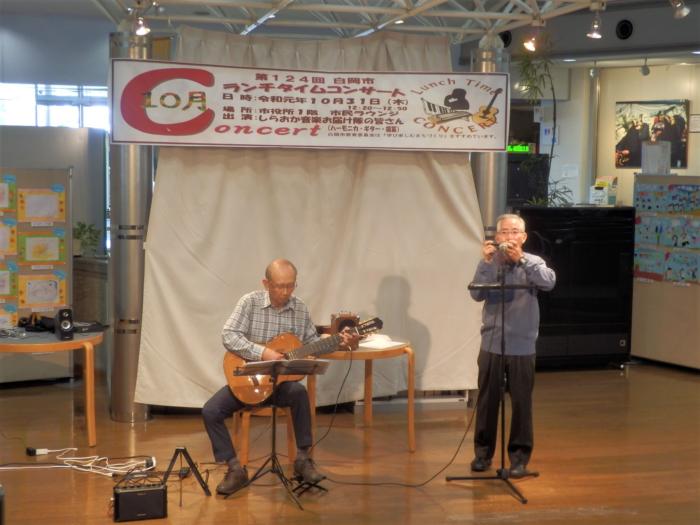 白岡市では教育委員会学び支援課の後援で毎月一回市役所庁舎1階の市民ラウンジにて市内の様々な音楽サークルの方々によるランチタイムコンサート (市役所の休み時間) が開かれています。本日は「しらおかおんがくお届け隊」によるコンサートが開かれましたので妻と共に鑑賞してきました。