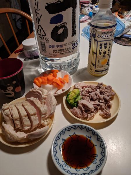 野菜はほぼ無し! しばらくに漬けた野菜のみ! 後払いニク肉 最近は湯がくのが好きに! 残念ながら牛肉は予算の都合で無し(╯︵╰,) 酒をーーー 裸族でも何も言われない 誰か一緒がイイな(╯︵╰,)