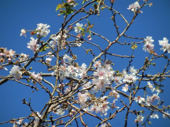 寒桜の花びらって、割と大きんだね。群馬の鬼石だか神流町だかの冬桜を見たけどももっと小さかったような。寒桜と冬桜は種類が違うのかな。