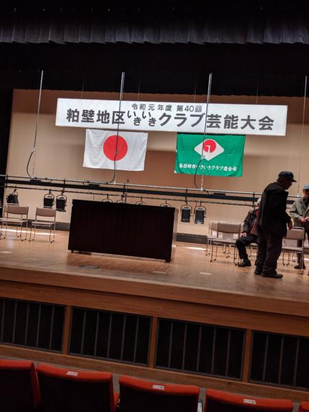9時半には入場し、最初から芸能の3番目まで見ていました。役員で忙しいから邪魔してもと思い最後部座席中央から拝見していましたよ。挨拶の長い人もいて傍から見ていても時間が気になりました。みんなしゃべるのが好きなんですね。でも、自治体連合会の活動状況なんてこんな時にしか知る機会はないからいい経験をしました。