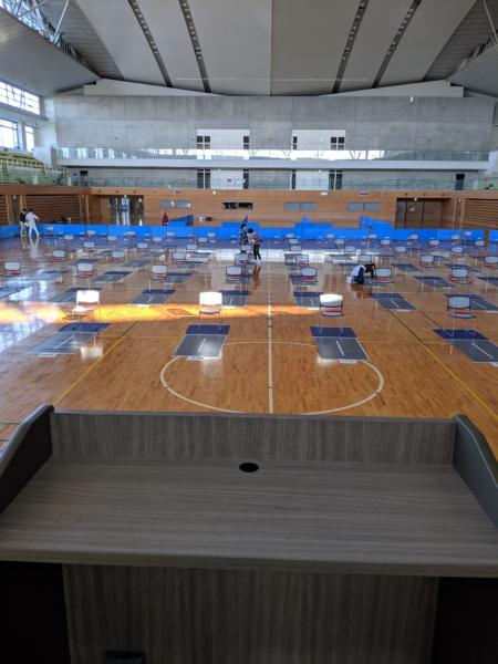 昨日は楽しいお酒で ついつい呑みすぎ(╯︵╰,) 二日酔い!! 午後からは明日のカルタ大会の 準備〜〜 ちょっとツラい(╯︵╰,) ウイングハットのメインアリーナ 何も無い所に準備〜〜 ステージまで!! 明日のカルタ大会…